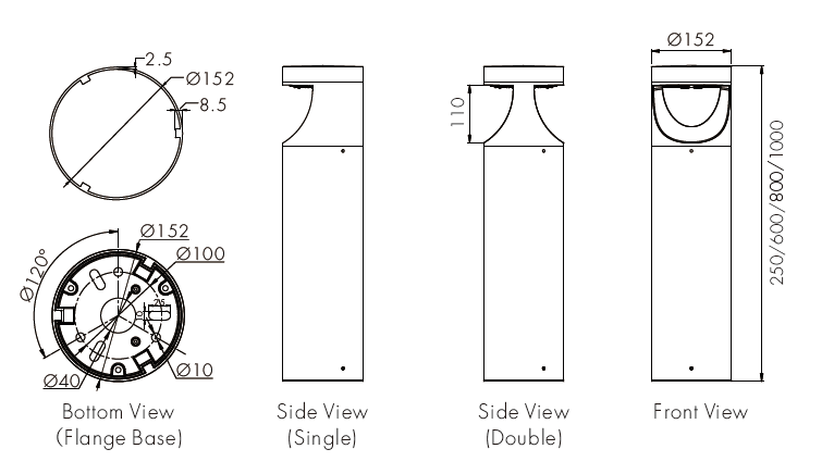 • Height: 250mm ( Optional 250/600/800/1000mm are mounted by Concrete anchor)