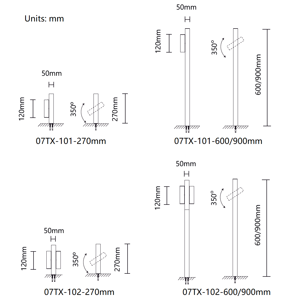 • Rotatable Heads: 1 or 2 heads, 350° Projection angle adjustable.