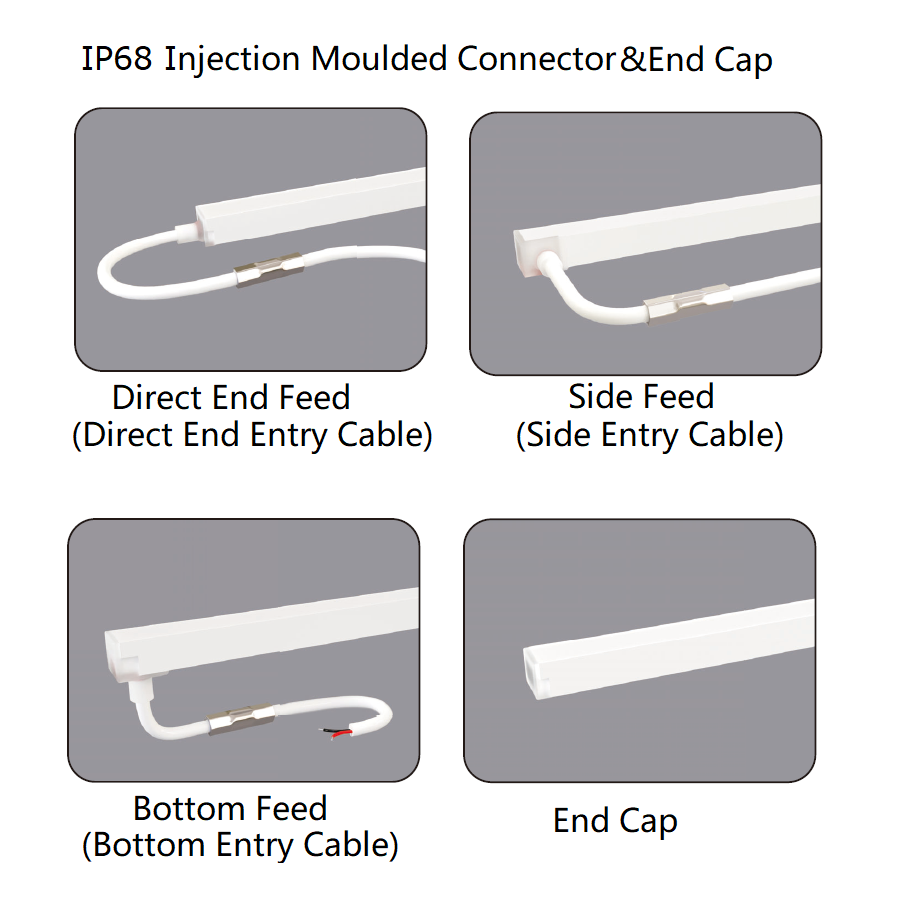 Long continuous runs and flexible power feeds simplify wiring and installation.